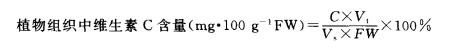 式中,C:标准曲线上查得样品中维生素含量(mg);Vt:样品提取液总体积(mL);Vs:测定时用样品提取液体积(mL);FW:植物组织鲜重(g)。
